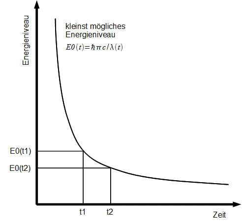 Energieniveau zum Zeitpunkt t1 entspricht Wellenlänge
